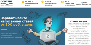 В век информации, когда множество сайтов появляется каждый день, а их, соответственно, надо наполнять контентом, то есть статьями, стал популярным такой вид заработка, как написание статей. Не многие создатели сайтов имеют возможность сами наполнять сайт материалом, кто-то не имеет времени, а кто-то не умеет писать, или душа не лежит. В любом случае автора сегодня не остаются без работы, ну и в будущем им это не грозит. Было бы желание писать, ну и умение не помешает, и работа вам гарантирована. Для того, чтобы заказчик легко нашел статью по теме, или автора для заказа, существуют специальные сайты, биржи контента или статей. На них и стоит зарабатывать, тогда у вас всегда будут заказы и работа, кроме того, вы можете размещать уже готовые для продажи статьи. Не продавайте одну и туже статью на разных биржах, в таком случае она не будет уникальной.